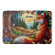 This vibrant design replicates the look of stained glass and features a handsome red fox amongst trees under a yellow sun.