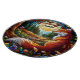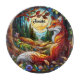 This vibrant design replicates the look of stained glass and features a handsome red fox amongst trees under a yellow sun.