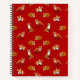 Original fine art pattern of a family of red foxes against a cheery cranberry red background by artist and designer Carolyn McFann of Two Purring Cats Studio printed on a custom printed, 8.5" x 11" spiral notebook. Perfect for home, school and office for fox and wildlife fans!