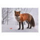 Wildlife glossy poster, with a photograph of a red fox in the snow and a single red cap mushroom. Perfect wall decor for any animal lover.