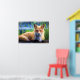 A poster with a colourful wildlife image of a red fox laying down in green grasses. This cute creature has soft fur and gentle eyes. Image has a dreamy magical feel.