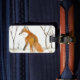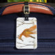 A watercolor painting of a red fox out on a hunt in the snowscape of winter adorns this customisable luggage tag!