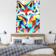 Red Fox Running Through Water Geometric Art Style Canvas Print