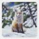 Red Fox sitting on snow bank, Vulpes, Mt. Square Sticker