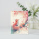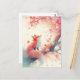 This enchanting postcard features a graceful red fox sitting peacefully beneath the sprawling branches of a cherry blossom tree in full bloom. The artwork is rendered in a dreamlike watercolor style, utilizing a soft and romantic palette of rose pink, coral, and ivory. Delicate flower petals drift through the air like snow, creating an atmosphere of quiet natural wonder. The fox gazes upward with a serene expression, its vibrant orange fur providing a beautiful contrast to the ethereal pastel background. This postcard is a perfect choice for sending a spring greeting, a "thinking of you" note, or a peaceful birthday wish to any wildlife lover.