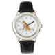 A watercolor painting of a red fox out on a hunt in the snowscape of winter adorns this watch!