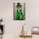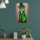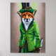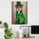 Cute and adorable Saint Patrick's day red fox with green clothes and green and black hat. This is a AI generated art.