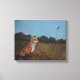 This canvas print features a reproduction of my original oil painting of a red fox and bluebird.