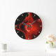 RED FRACTAL ROSE IN BLACK,PINK GEMSTONES LARGE CLOCK
