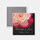 Attractive red frosting white rose wedding magnet personalised with your names and date.