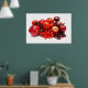 Vegetables and fruit all of red colouring including pomegranate, red pears, large and cherry tomatoes, apples, sweet potato, chilie peppers and cranberries.