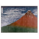 The scene captured in the Japanese woodblock print, "Fine Wind, Clear Morning" (also known as "Red Fuji" or "Aka Fuji"), is a breathtaking display of Mount Fuji bathed in the vibrant hues of sunrise. This artwork is part of Katsushika Hokusai's famed series, "Thirty-six Views of Mount Fuji," created between 1830 and 1832. --- A woodblock print, also known as mokuhanga (木版画) in Japanese, is a unique art form created by carving a design onto a block of wood. The raised portions of the woodblock are then inked, and pressed onto paper to transfer the image. This technique results in prints known for their bold lines, stark contrasts, and flat areas of colour. --- Hokusai's "Red Fuji" masterfully utilises this technique. The majestic Mount Fuji dominates the scene, its peak capped with pristine snow that gleams against the clear blue sky. Wispy clouds drift across the azure expanse, hinting at a gentle breeze. The most striking aspect of the print is the mountain itself, bathed in a fiery red that evokes the burning embers of dawn. This dramatic use of colour is a hallmark of Hokusai's work and infuses the scene with an almost mythical quality. --- The foothills of Mount Fuji unfurl like a tapestry of lush green, suggesting dense forests teeming with life. This verdant blanket contrasts beautifully with the stark beauty of the snow-capped peak, adding depth and dimension to the scene. Here, beneath the watchful gaze of Mount Fuji, an ecosystem thrives, its rich foliage hinting at the hidden wonders that unfold at the mountain's base. This verdant tapestry conceals a legendary forest known as Aokigahara Jukai (青木ヶ原樹海), which translates to "Sea of Trees" in English. This vast expanse of trees is not only renowned for its beauty but also shrouded in folklore. --- Legend whispers of the Aokigahara Jukai being a place imbued with a spiritual energy, some say even a melancholic one. Folklore tells of yurei (幽霊), vengeful spirits, who linger amongst the dense trees. Whether truth or campfire tale, the Aokigahara Jukai's dense foliage and unusual magnetic properties, which can cause compasses to malfunction, contribute to its mysterious aura. --- Part of 36 Views of Mount Fuji series by Artist Katsushika Hokusai dating from 1830 to 1832. The author died in 1849, this work is in the public domain in its country of origin and other countries and areas where the copyright term is the author's life plus 100 years or fewer.