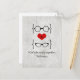 Unique and funny Geeky Glasses Valentine's Day Postcard featuring a red heart and two pairs of nerdy glasses, a masculine pair and a girly pair on a vintage look grey background. This geek themed Valentine can be customised with your own fun greeting! Click on the "Customise It" button to find additional personalisation options.