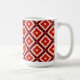 An artistic seamless pattern featuring red, orange, and beige geometric shapes forming interconnected star motifs.
