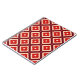 An artistic seamless pattern featuring red, orange, and beige geometric shapes forming interconnected star motifs.