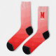 Red geometric mesh pattern Monogram Socks. Personalise gift for him with custom initial and name.