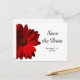 Elegant Red Gerbera Daisy Save the Date Postcard. Close-up photo of a beautiful red gerbera daisy with deep red and yellow centre on a white background. Perfect for a spring wedding! Customise it by changing the background colour! If you like this design and would like to see it on any other product, please send me a message and I will be glad to create it for you. Please visit www.zazzle.com/lsarmentoart for more unique designs.