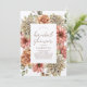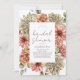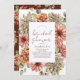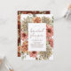 This elegant bridal shower invitation features gerbera/daisy in red, roses in orange, and dahlias in white in watercolor on a white background. The reverse side features a burgundy red background with floral patterns. Personalise it for your needs. You can find matching products at my store.