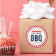 Celebrate the mum-to-be or parents-to-be with a Baby Shower BBQ Party. This round Baby Shower BBQ sticker features a light orange tint centre bordered by a red gingham pattern. Check out matching items like invitation, stickers and stamps here https://www.zazzle.com/collections/gingham_bbq_party_collection-119000567419036723?rf=238364477188679314