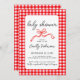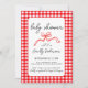 Red Gingham Cute Bow Handwriting Baby Shower Invitation