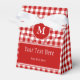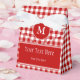 Red and white gingham pattern with a red medallion and monogrammed initial on the flap. A solid red area at the bottom for your custom text. Personalise it by adding your text or customise it further by removing or changing elements.