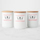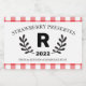 Label your homemade recipes with a touch of country! A red gingham pattern borders a space to include your monogram initial, surrounded by a black laurel. Text above and below allows for personalisation, including food type, your name and the date.