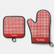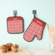 Bright red gingham is always perfect in style! This red and white checked oven mitt and potholder set has country charm, with bright, cheerful colours.