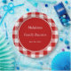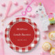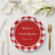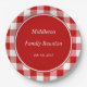 Large red circle in the centre of the plate over a red and white gingham pattern. Customise the text in the centre of the plate for your own event or remove the text for a classic look.