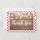 Red Gingham Thank You Rustic Wood Event Shower Card