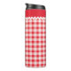 This Red Gingham Thermal Drink Tumbler features country red gingham and faux white ric rac. Keeps warm drinks warm and cold drinks cold!
