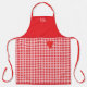 Red and white gingham checks with red straps and red trim at waist and bottom. Red heart at waist. Very cute country style. Text your name.