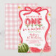 Red Gingham Watermelon Bow Summer Birthday Invitation, One Sweet Girl Birthday Invite, Editable One In A Watermelon Kids Birthday