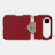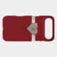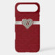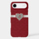 Chic iPhone 6 Plus case, done in graphics of a red tufted velvet look, with a ruby outlined diamond heart, on a silver glittery looking ribbon. Personalise the red one letter monogram. Glamourous way to protect your iPhone 6 and look stylish too, and makes a great gift idea.