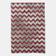 Red Glam Silver White Zigzag Stripes Tea Towel