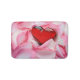 Lovely and romantic illustration featuring a red glass heart on a bed of white-pink rose petals.