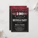 Red Glitter 100th Birthday Invitation
