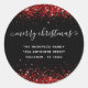 Red Glitter Merry Christmas Name Address Black Classic Round Sticker