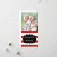 Merry Christmas customisable photo card in red glitter effect stripes pattern with black and white details. Personalise this card with your photos and name.
