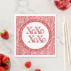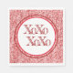 Glitter in shades of red surround several large circles, with "XOXO XOXO" in the centre of white circle. Look closely and you will see the glitter is made with heart shapes. The red and white theme give a classic Valentine's Day feel to these paper napkins.