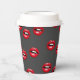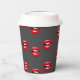Red glossy lips on grey paper cups
