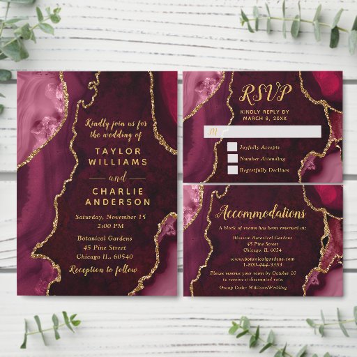 Burgundy Red and Gold Agate Marble WeddingDesigned by Kirsty W