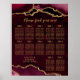 Guide your guests in style with this elegant wedding seating chart featuring a burgundy red agate marble design accented with luxurious gold details. The bold geode-inspired background creates a dramatic and sophisticated look, perfect for fall and winter weddings, formal celebrations, or glamorous evening events. Designed for up to twelve tables, the layout keeps names organized and easy to read while complementing the organic agate texture. Ideal for couples seeking a stylish and unique wedding display, this seating chart blends natural stone aesthetics with a refined, modern layout. Easily personalize all text to match your wedding details and create a beautiful focal point for your reception.