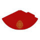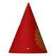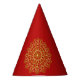 Elegant red and golden paper party hat. Ideal for festive special occasions. Red background with a golden Arabic-inspired ornament in modern style. Abstract, illustration, elegant, geometric, modern, ethnic, baroque, luxury, Arabic, Moorish, motif.