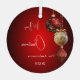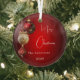 A red gradient background. Decorated with red and gold baubles. Personalise and add your name, year. Text: Merry Christmas