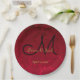 Red Gold Black Christmas Winter Wedding Monogram Paper Plate