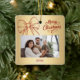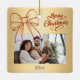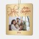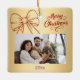 Red gold bow photo hand-drawn Christmas Ceramic Ornament