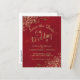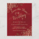 This beautiful save the date postcard features a gorgeous design with a lush marbled red background, gold script calligraphy, and frilly ornate faux foil curls and swirls in the corners. The back has room for a custom note with your website and other information. Beautiful way to let your friends and family know about your upcoming wedding.