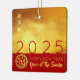 Modern design with golden textured paper (printed image) with vertical golden Chinese wishes + large 2025 in red + small Snake paper cut-out with yellow texts HAPPY NEW YEAR and Year of the Snake onto a red background. Design on square ceramic ornament with red background + wishes to customise in back. You can easily change year by clicking the customise button. Matching greeting card, holiday postcard, sticker and more soon... Perfect for a timeless and modern Chinese New Year of the Snake 2025.
