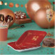 This Chinese wedding napkins features an gold double happiness symbol, gold Chinese frame and bride and groom names on a shimmering red background.