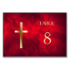 This is an elegant reception table card with a pretty gold cross and text on a bright red abstract background. The back of the card is identical to the front. All the text may be easily customised. This card matches the Red Gold Christian Cross Wedding Invitations in our store, but is appropriate for a variety of formal dinner occasions. If you'd like to add the two gold hearts at the foot of the cross (as on the matching wedding invitations), just shoot us an e-mail request and we'll be happy to add them for you.